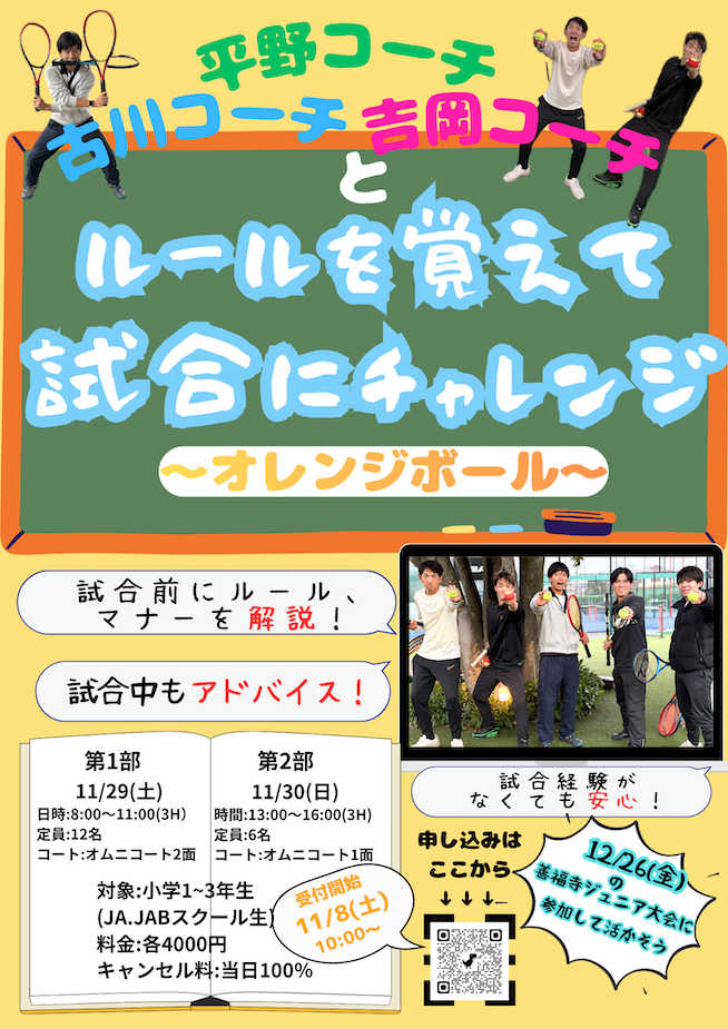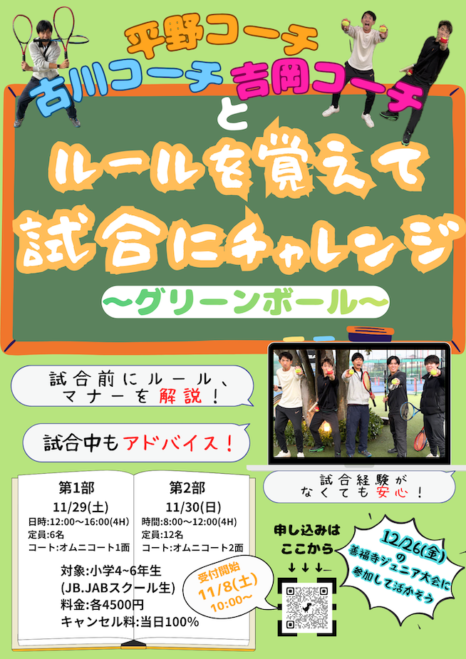 そして、12/26(金)に開催予定のテニス大会を目指して練習しましょう!