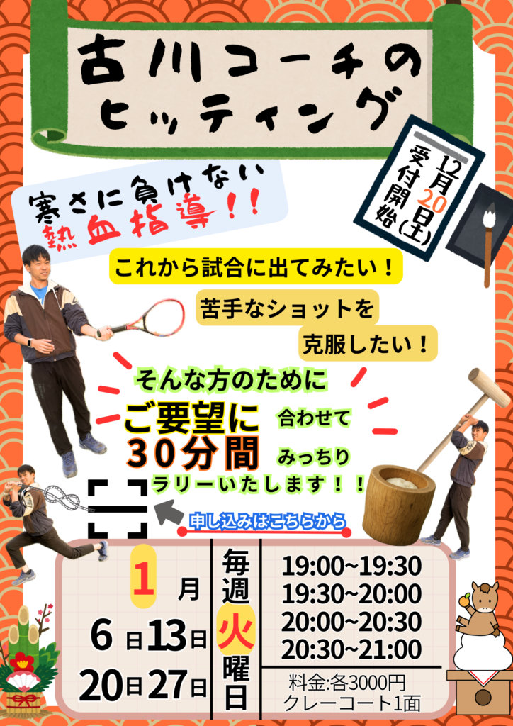 1月度 “古川将樹コーチの30分間ヒッティング”お知らせ