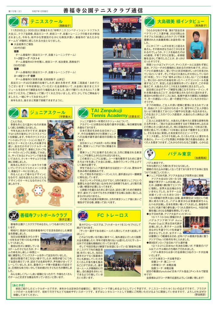 【善福寺公園テニスクラブ通信 第112号】を発刊しました