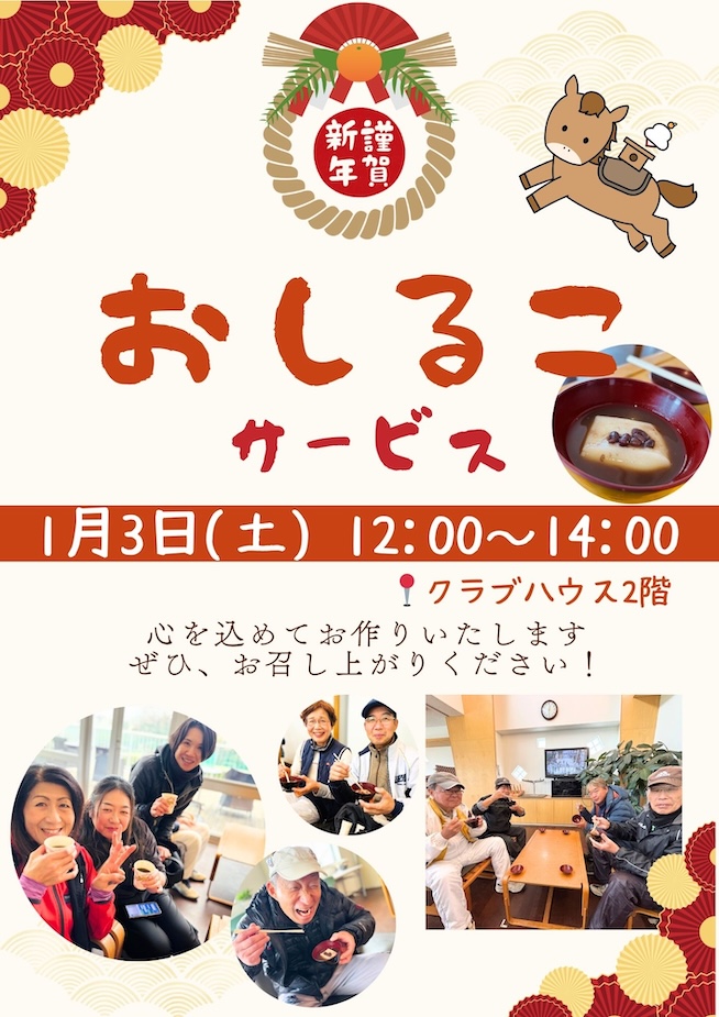 12時~14時までの短い時間となりますが、是非プレーの合間にクラブハウス2階へお越しください。